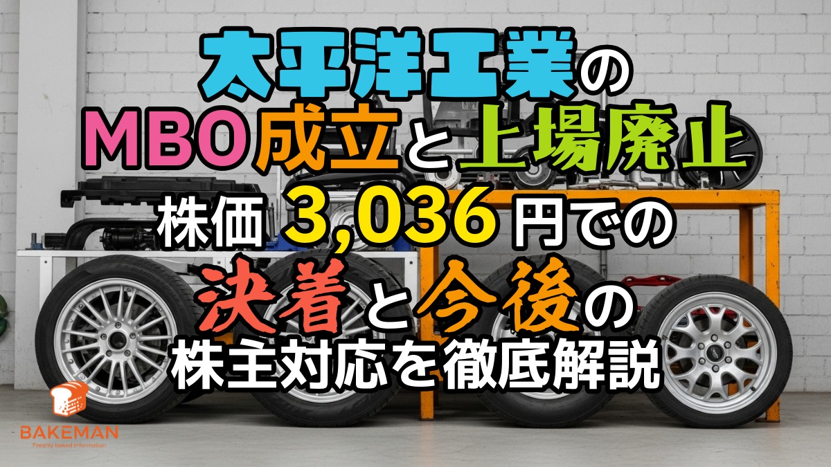 2026年1月27日、自動車部品メーカーの太平洋工業株式会社(7250)に対するMBO(マネジメント・バイアウト)を目的とした公開買付け(TOB)が成立したことが発表されました。 これにより、同社は東京証券取引所および名古屋証券取引所からの上場廃止に向けた手続きに入ります。本記事では、今回のMBO成立の背景、難航した価格決定プロセス、そして既存株主が今後どうなるのかについて、最新情報を基に解説します。 1. 【結論】太平洋工業のMBO成立と上場廃止の概要 創業家である小川家が主導し、株式会社CORE(公開 ...