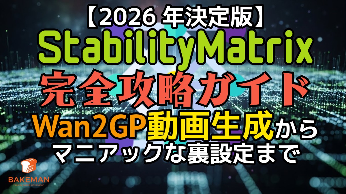 2026年現在、ローカルでのAI画像・動画生成環境はかつてないほど複雑化しています。 Flux.1やSD3.5といった巨大な静止画モデルに加え、Wan 2.1 / 2.2のような高負荷な動画生成モデルが標準化しました。「ただ動かすだけ」なら簡単ですが、「複数の環境を共存させ、VRAM限界まで性能を引き出す」 には高度な知識が必要です。 この記事では、ローカルAI統合環境のデファクトスタンダードとなった StabilityMatrix について、公式マニュアルには載っていないマニアックな運用術を徹底解説しま ...