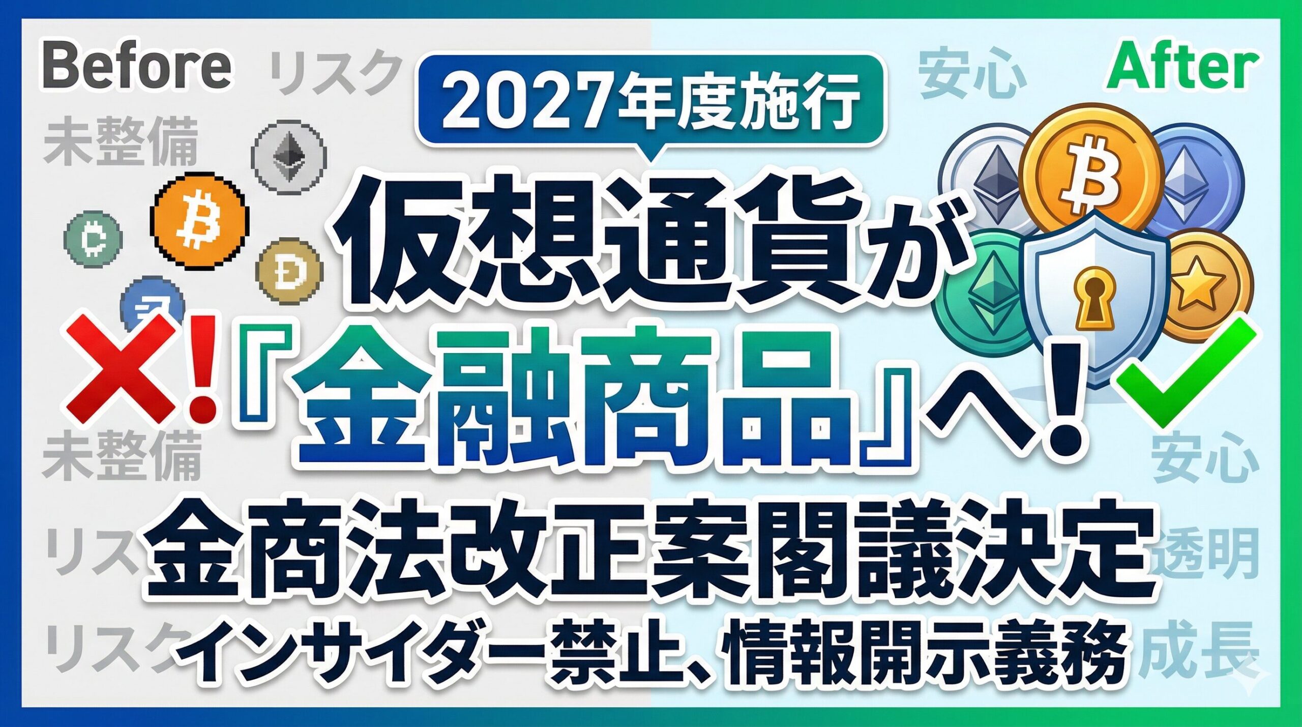 2026年4月10日、日本政府は 金融商品取引法 (金商法)の改正案を閣議決定しました。これにより、これまで資金決済法で規制されていた暗号資産(仮想通貨)が、ついに株式や債券と同じ 金融商品 として位置づけられることになります。 今回の法改正は、日本の暗号資産市場を「決済の手段」から「信頼できる投資市場」へと昇華させる歴史的な一歩です。投資家の皆様にとって非常に重要な変更点について、詳しく紐解いていきましょう。 資金決済法から金商法への移行が意味するもの これまで暗号資産は主に「決済の安全性」に主眼を置い ...