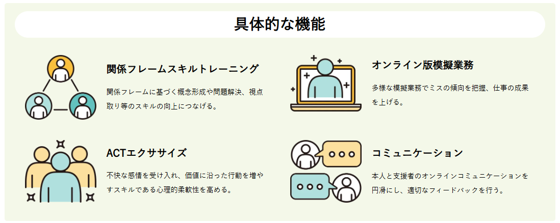 - 環境調整: 「個人の性格」のせいにせず、照明や指示の出し方など「環境」を調整して適応を促すアプローチ。