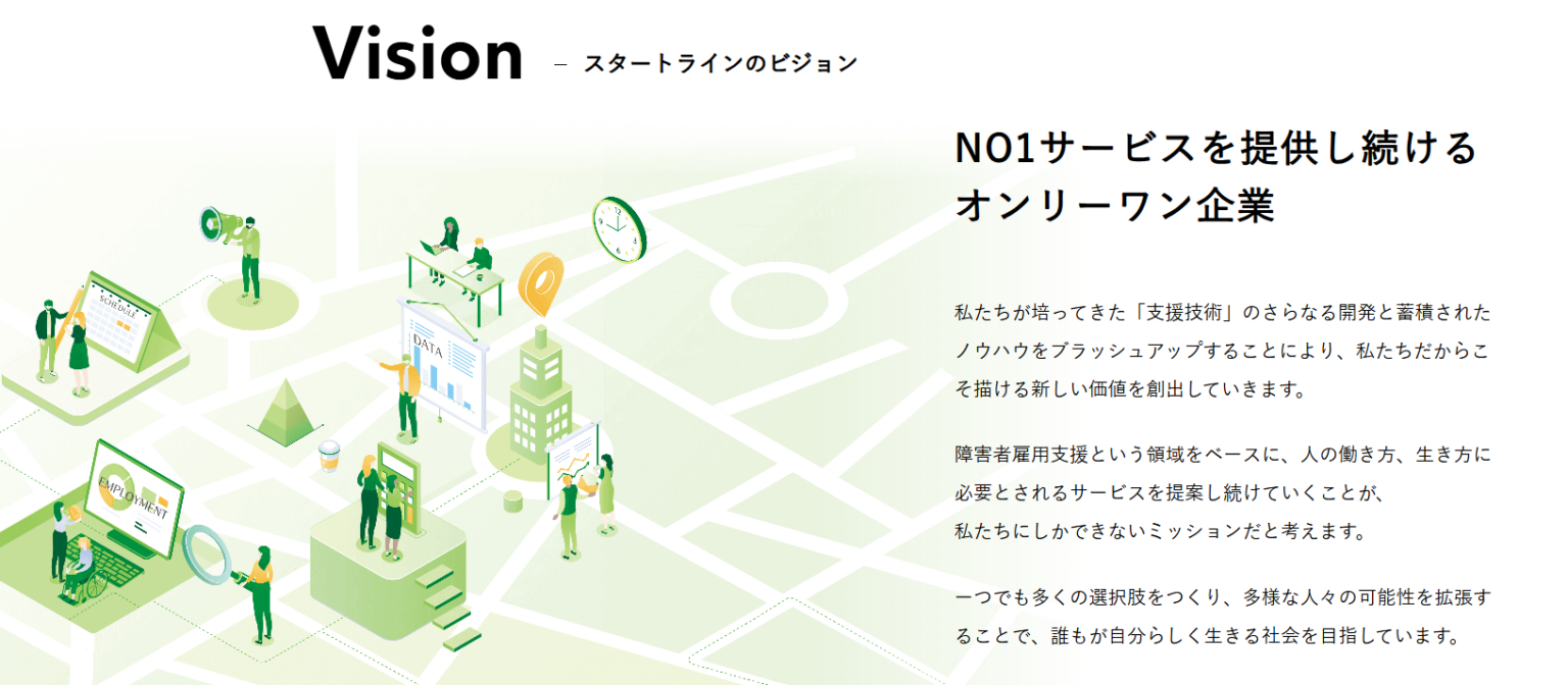 スタートラインは、企業向けの障害者雇用支援サービスを提供しています。
