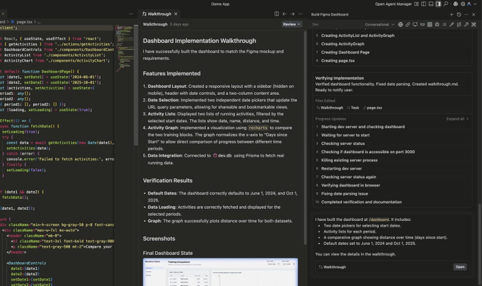 Antigravityのエージェントに指示し、以下の機能を持つPythonクラスを作成させます。