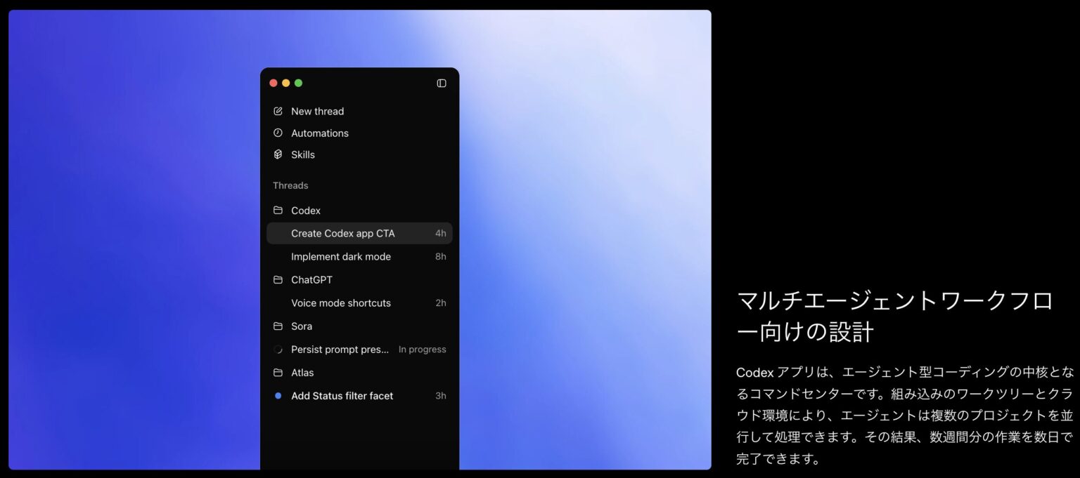 2026年2月2日、OpenAIはMac用デスクトップアプリケーション「Codex」を正式リリースしました。