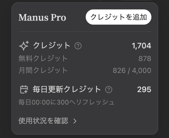 Manus AIは、タスクの複雑さに応じて「クレジット」を消費します。