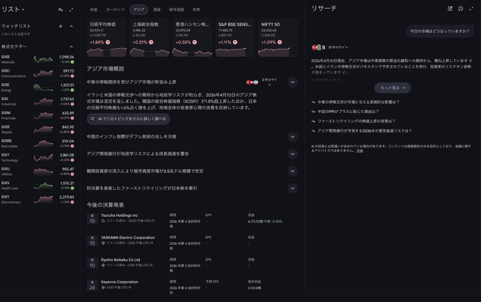 日本国内でも2026年4月8日から順次、完全な日本語サポートが開始されています。日経225やTOPIX、個別銘柄(トヨタ、ソニー、任天堂など)の分析において、これらのAI機能をフル活用できます。